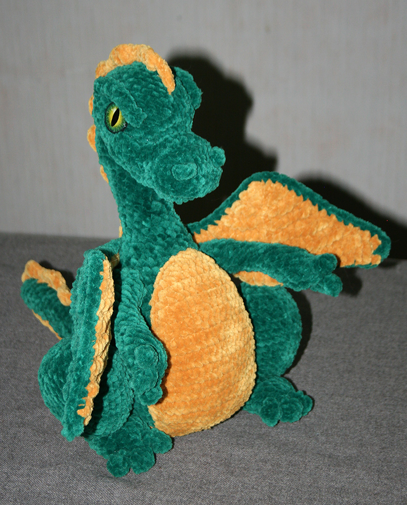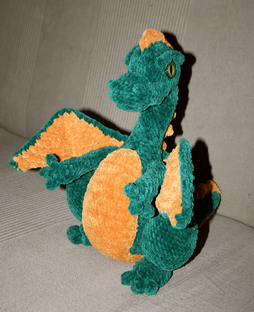 Настоящий дракон, с крыльями, гребнем и хвостом. Под нежной плюшевой шкуркой скрывается стальной каркас и огненное сердце. Старается выглядеть суровым, но в глубине души обожает обнимашки.