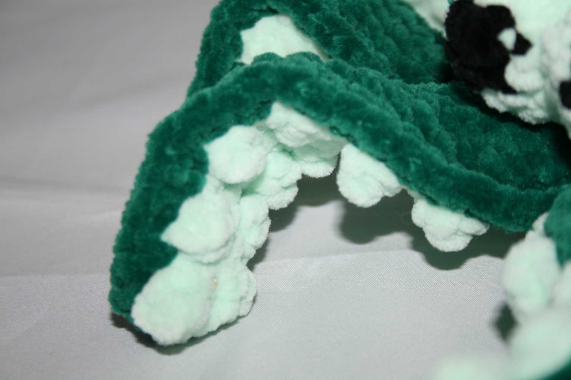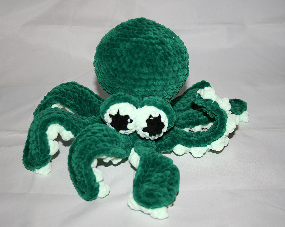 Все из нежной плюшевой пряжи на проволочном каркасе, набивка - холлофайбер. У всех на нижней стороне щупалец очень приятные на ощупь бугорки-"присоски", тоже плюшевые.